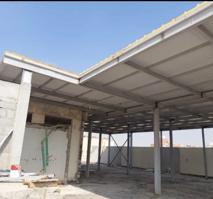 - تعتمد أيضًا على عمالة مؤهلة وأفضل المهندسين في إنشاءالمشاريع، ويتم إعداد قاعدة خرسانية لتنفيذ بناء الهناجر.